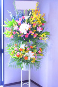 ~2段お祝いスタンド イエローピンク系~ 2段式スタンド、イエローピンク系のスタンドです。 開店祝い・お誕生日・コンサート・リニューアルオープン記念やイベントなどに。 ※アレンジはイメージでおまかせ商品になります。時期により入荷出来ないお花もあります。 お花のお色やご要望がございましたらお申し付け下さい、出来る限り対応させていただきます。 同じスタンドがご用意出来ない場合もございます。